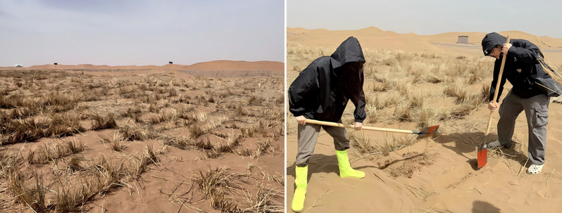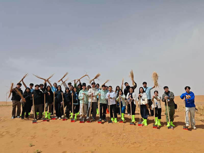 中卫沙坡头是我国防沙治沙的成功范例,师生们被沙坡头旅游区“沙漠与黄河对话”的奇观深深震撼。进入沙漠后,大家挽起袖子,齐心协力亲手扎下麦草方格,体验防沙治沙工作。学子们不禁感慨道:“书本上所学到的知识,远不及亲手实践来得深刻,治沙工作着实不易,而这麦草方格无疑是生态守护领域的一项伟大创举!”此刻,大家都深刻领悟到了自身肩负的生态保护责任。
